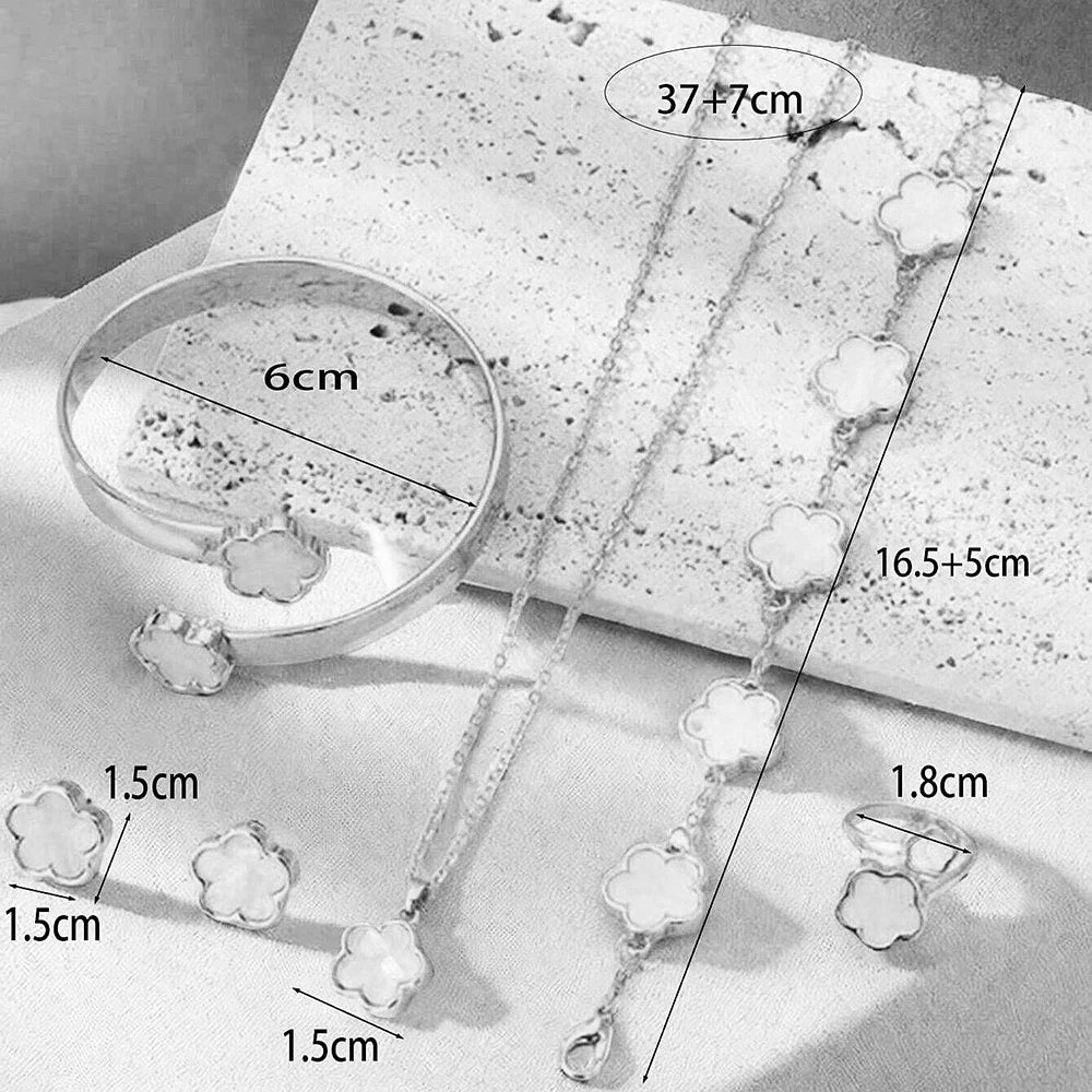Elevate your everyday style with the Lucky Flower 5-Piece Jewelry Set—a curated collection designed for those who appreciate refined accessories. This comprehensive set features a coordinated necklace, earrings, ring, and bracelet crafted from premium zinc alloy, each piece finished to a lustrous shine. Perfect for special occasions or daily wear, the collection seamlessly transitions from casual to formal settings. Built to last with a durable, chemical-free construction, this set delivers both sophistication and reliability. An ideal gift or personal investment in timeless elegance.